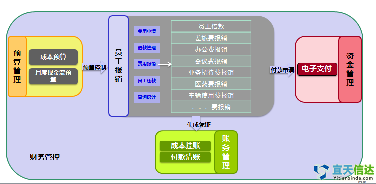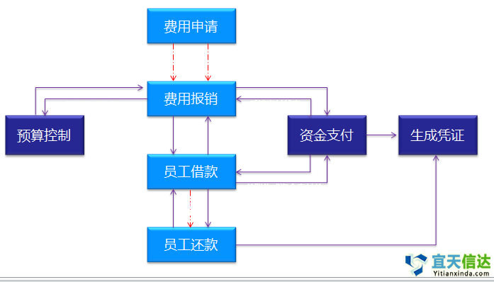 員工報(bào)銷其與預(yù)算管理模塊、資金管理模塊、賬務(wù)模塊無(wú)縫銜接。通過(guò)預(yù)算控制方案進(jìn)行成本預(yù)算和現(xiàn)金流預(yù)算控制;對(duì)無(wú)需付款業(yè)務(wù)可以直接生成財(cái)務(wù)憑證;對(duì)于需進(jìn)行付款的報(bào)銷業(yè)務(wù),直接發(fā)起電子支付申請(qǐng),付款后自動(dòng)生成記賬憑證,提高核算和支付效率。