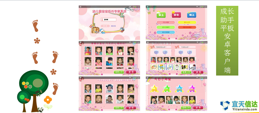 我們以為給了孩子生命,給了孩子更好的物質(zhì)享受,我們就是很稱職的爸爸媽媽,我們以為把孩子送到幼兒園,孩子就會自己長大……一個孩子只有一次童年,不會再給你第二次哺育的機會;缺失了對孩子的陪伴和專業(yè)的孩子成長記錄、分析,無法給予適合孩子成長發(fā)展的專業(yè)指導,內(nèi)心的失落和愧疚無法彌補……幼兒園寶寶成長專家系統(tǒng),從孩子上幼兒園的第一天起,每一天每個孩子都將擁有一份專屬于自己的成長記錄,每一個孩子都將得到尊重和同等的關(guān)注,客觀公正的記錄 。