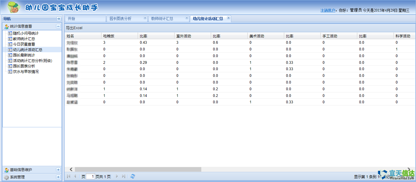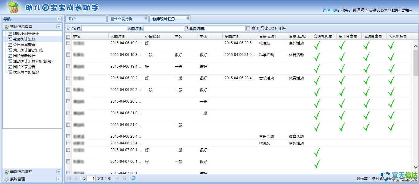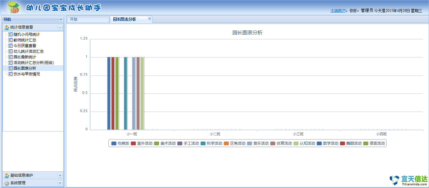 ?后臺記錄寶寶每天成長信息,園長可在此即基礎(chǔ)上查看全園統(tǒng)計信息作為教學參考