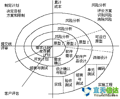 1988年,Barry Boehm正式發(fā)表了軟件系統(tǒng)開發(fā)的"螺旋模型",它將瀑布模型和快速原型模型結(jié)合起來,強調(diào)了其他模型所忽視的風(fēng)險分析,特別適合于大型復(fù)雜的系統(tǒng)。