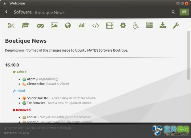 “Ubuntu的MATE歡迎和精品軟件已經(jīng)為16.10更新,新功能已經(jīng)回遷到Ubuntu 16.04 MATE,現(xiàn)在是可用的,”馬丁說Wimpress。“如果你訂閱歡迎更新您就可以訪問在Ubuntu的精品新聞和精品的搜索功能MATE 16.04現(xiàn)在。”